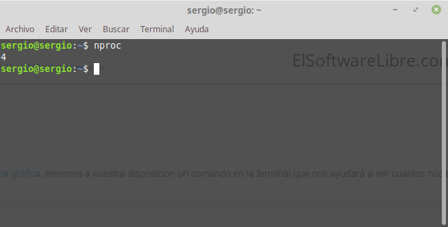 Desde Linux, además de poder ver la información del sistema de forma gráfica, tenemos a nuestra disposición un comando en la terminal que nos ayudará a ver cuántos núcleos tiene nuestro PC. Para ello, abrimos la terminal y pegamos el siguiente comando: